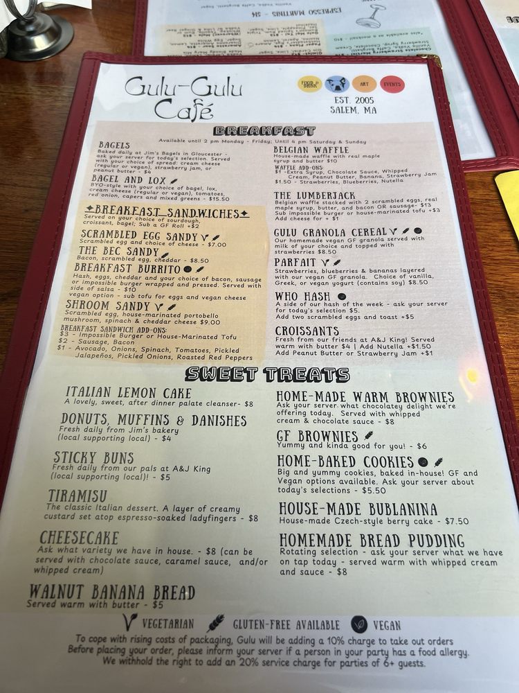 Welcome to Gulu-Gulu Cafe, a delightful spot in Salem, MA, where casual dining meets delectable flavors. This women-owned cafe excels in crafting a menu that caters to diverse tastes, featuring everything from hearty sandwiches to mouthwatering bites.